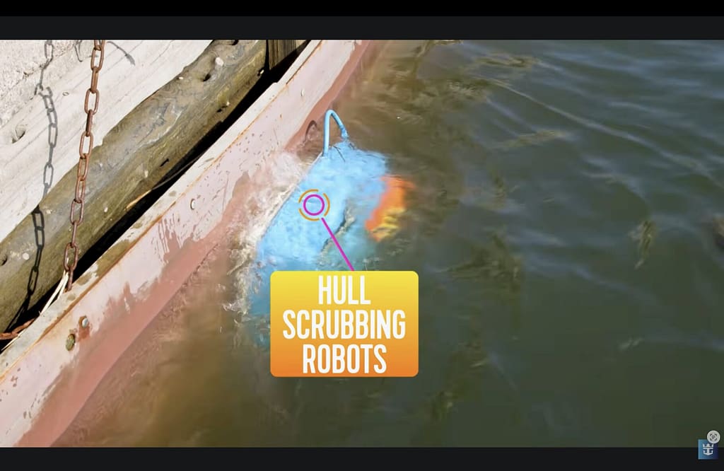 Royal Caribbean is now using underwater robotic drones to scrub the ship’s hull, a critical task that directly affects fuel efficiency. A cleaner hull reduces drag in the water, which means lower fuel consumption and improved environmental performance. Roughly half of a cruise ship’s energy is used for propulsion, and up to 80% of that energy goes toward overcoming water friction. Keeping the hull clean isn’t just maintenance—it’s a major sustainability play.